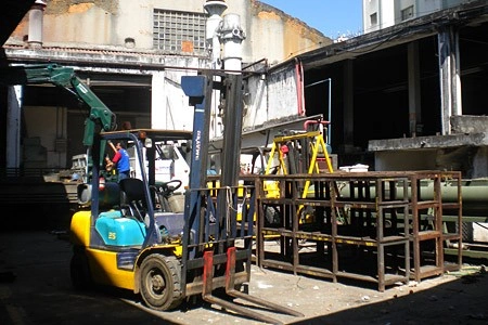 Organização de produtos e movimentação de máquinas é feito com empilhadeira